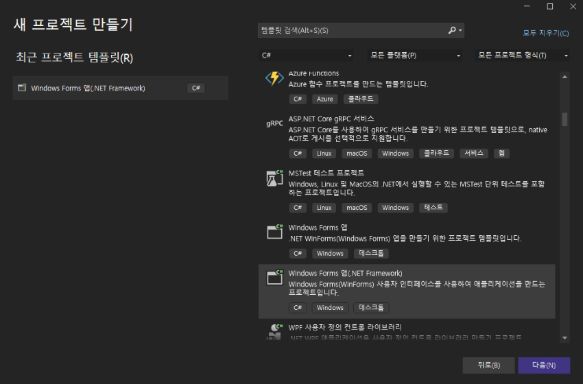 Windows Forms 앱(.Net Framework)을 클릭합니다.